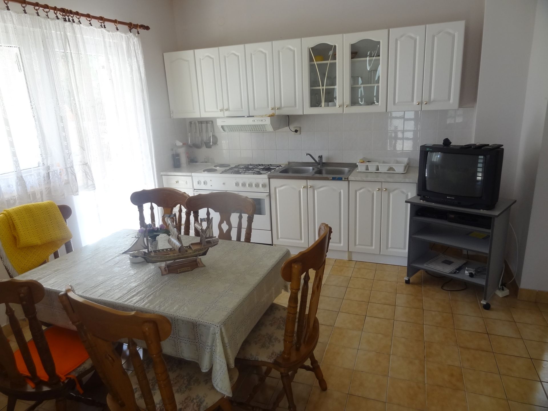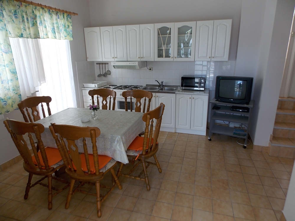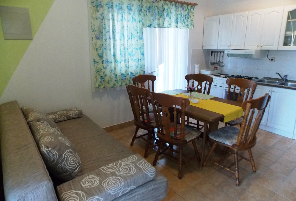 Apartmani prizemlje – „Vesna“ – za 5 osoba – površine 40 metara kvadratnih, sastoji se od sobe s bračnim i jednim pomoćnim krevetom, kupaonice te velike kuhinje s blagovaonicom gdje je smješten trosjed na razvlačenje (za dvije osobe). Iz kuhinje izlaz na terasu.